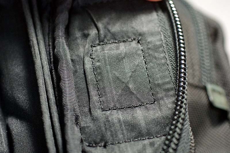 ストラップに引っ張られる際は表面のバリスティックナイロンのみではなく、本体ごと引っ張られることになるのでバリスティックナイロンが裂ける心配はありません。